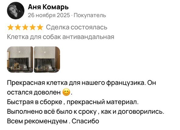 Каждая клетка и лежанка рождаются здесь, в Санкт - Петербурге. Наше собственное производство - это не просто цех, а место, где мы создаем комфорт и безопасность для ваших собак. Мы сами варим крепкие каркасы, шьем уютные лежанки и обрабатываем дерево, используя только качественные российские материалы.